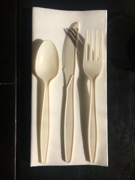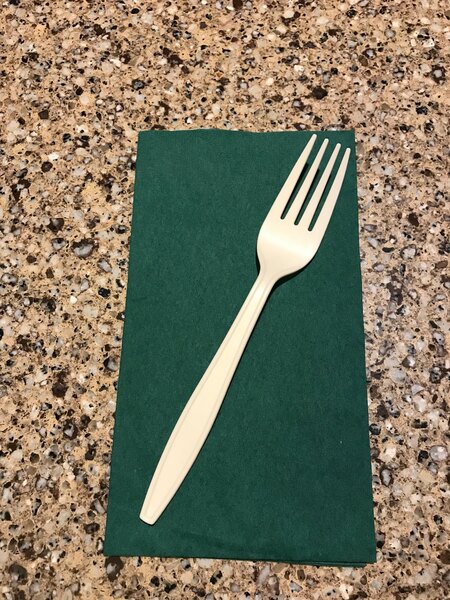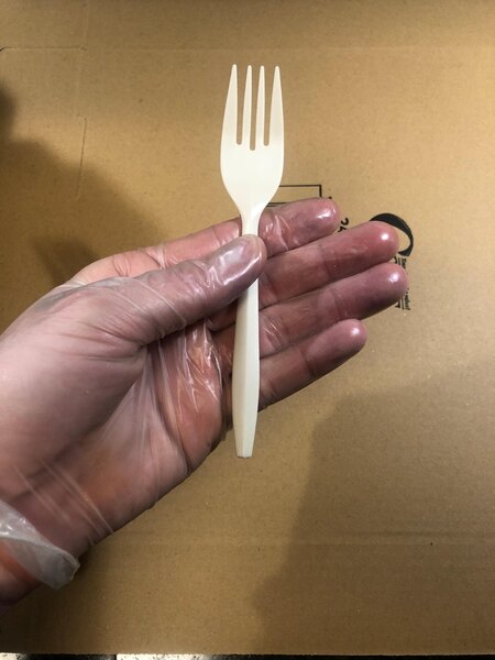 These heavy duty cornstarch forks are so good. Solid and easy to eat with. We love these forks. The color is great. The best is that they are compostable.