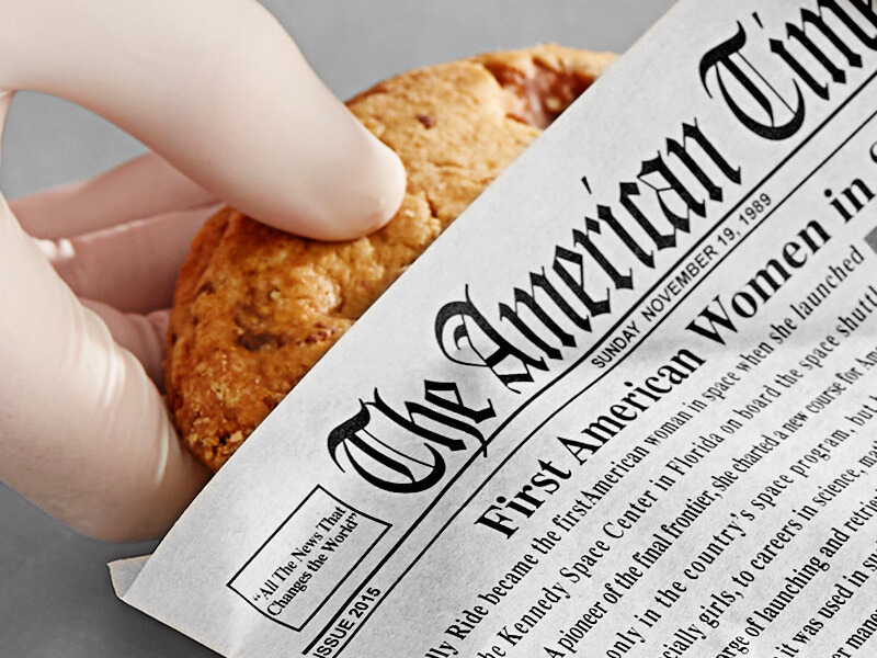 With an opening on two sides, this paper is ideal for wrapping flat items such as pastries, soft pretzels, and cookies. Easily slide them in through the side opening and deliver them to your customers.