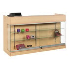 Add a finishing touch to the floor plan of your retail location with this 72" x 22" x 42" maple cash register counter with locking showcase. This counter is perfect for checking out customers and displaying retail products. The front of the unit functions as a showcase, and it includes (2) 68 5/16" x 8" x 6mm adjustable glass shelves. The back of the unit offers 2 wood drawers and 4 wood shelves for superb storage. Combine this unit with other showcases, counters, and stands (sold separately) to create a coherent display.