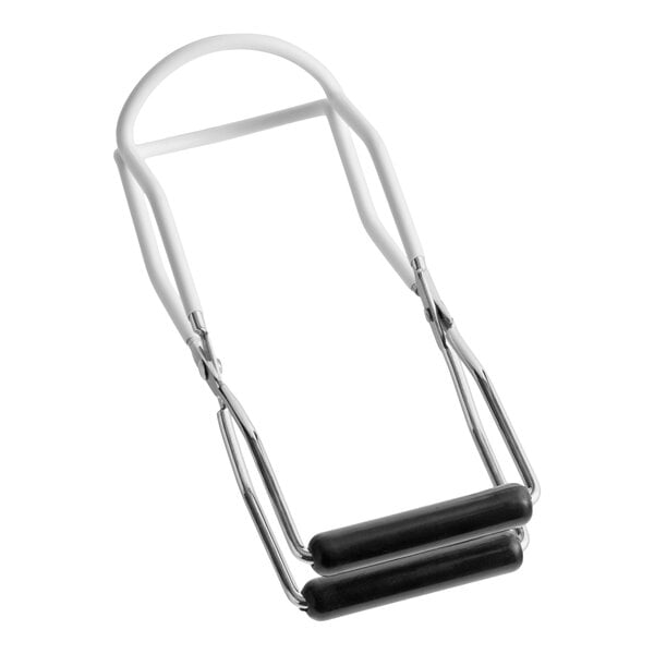 This canning tool boasts a chromed steel construction with PVC-coated grips to offer sturdiness and durability. It's perfect for fresh preserving in your restaurant's kitchen and ahead of catered, farmers' market, and church events. Versatile by design, this lifter handles a variety of jar sizes with ease.