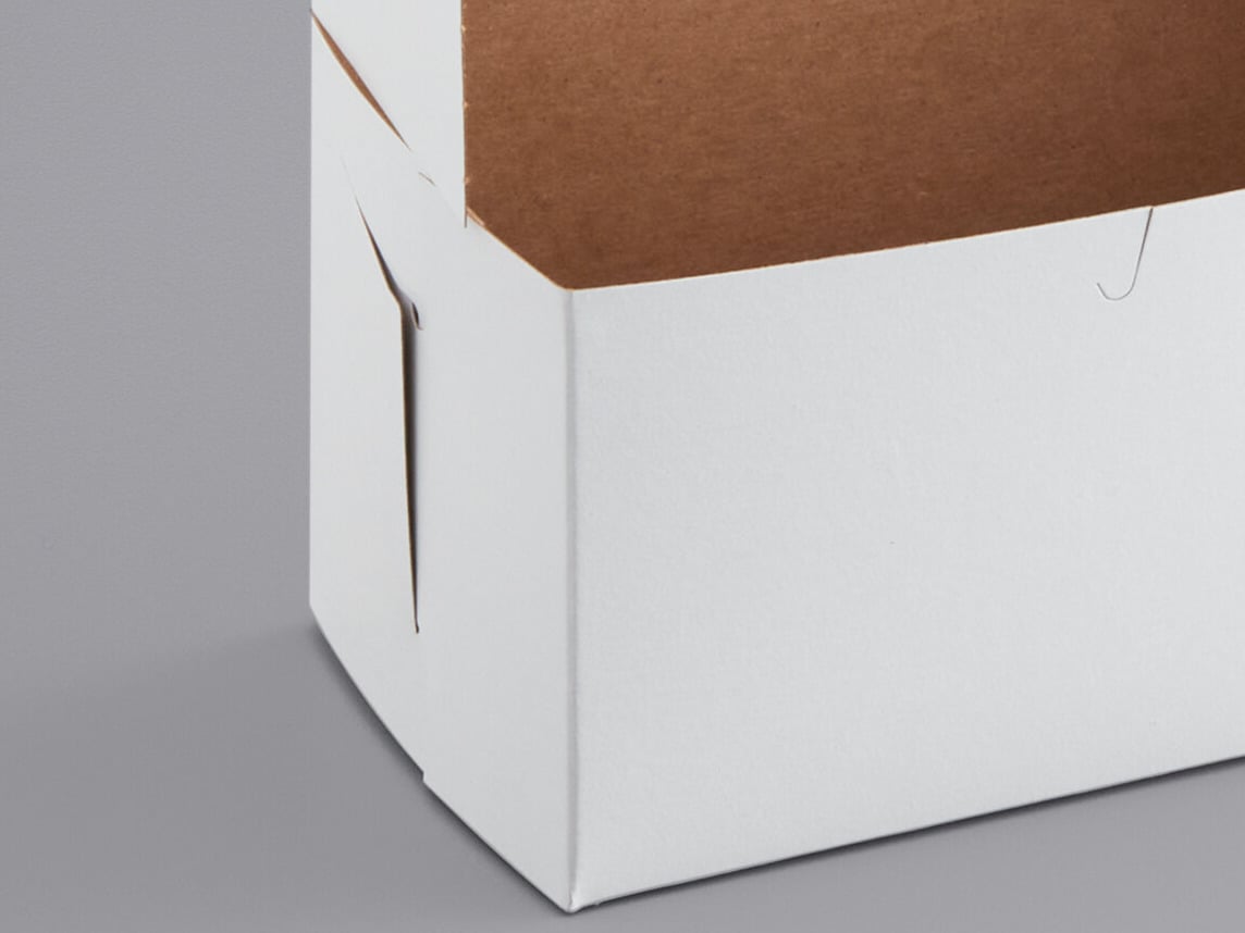 Show off your baked goods in style! The elegant white exterior of this bakery box will provide a professional feel to your establishment, while the natural brown interior creates the perfect palette to showcase your creations. The white exterior also makes it easy to customize each box with stamps or labels.