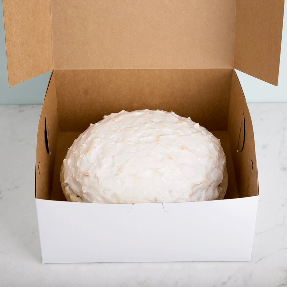 Great for packaging cakes, donuts, cookies, and muffins at your bakery, this white box is the perfect choice for your business. It has a simple, easy-to-use design and provides endless possibilities to fulfill your packaging needs. Plus, it provides your customers with peace of mind as they transport your goods.