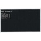 Display important information in hotels, offices, schools, hospitals, or restaurants with this Aarco AOFD4896L 48" x 96" black felt open face horizontal indoor message board with oak wood frame and 3/4" letters. Featuring an open design for quick customization, this board's large, black felt surface is precision grooved on 1/4" centers to accommodate universal letters and numbers. It also comes with one set of 3/4" Helvetica letters (165 characters) and an assortment tray for optimal organization, allowing you to immediately create and present menus, announcements, or schedules. When your message is ready, simply use the included eye hooks on the back of the board to hang it on any desired wall.
