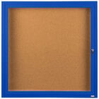 Aarco DCC3636RB 36" x 36" Enclosed Hinged Locking 1 Door Powder Coated Blue Finish Indoor Bulletin Board Cabinet