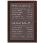 Boasting a durable aluminum frame with an cherry powder-coated finish for a wood-like appearance, this message center is resistant to dings, scrapes, and scratches for increased longevity and is sure to complement your vestibule or waiting room's professional look. Thanks to the included mounting brackets, it's easy to install. Plus, the brackets are concealed for a clean, seamless appearance. An ideal addition to any facility, this message center is the perfect way to advertise upcoming events or show off new daily lunch specials!