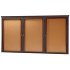 Display important information inside hotels, offices, schools, or restaurants with this Aarco OBC4896RC 48" x 96" enclosed indoor hinged locking 3 door indoor bulletin board with natural oak frame and crown molding. Made of solid wood with an attractive, natural oak finish, this enclosed bulletin board allows you to creatively present menus, announcements, or schedules. The frame features a clear lacquer coating that resists scrapes and scratches to increase durability and longevity, and the decorative crown molding promotes a professional, sophisticated appearance.