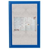Aarco ODCC3624RIB 36" x 24" Enclosed Hinged Locking 1 Door Powder Coated Blue Outdoor Lighted Bulletin Board Cabinet