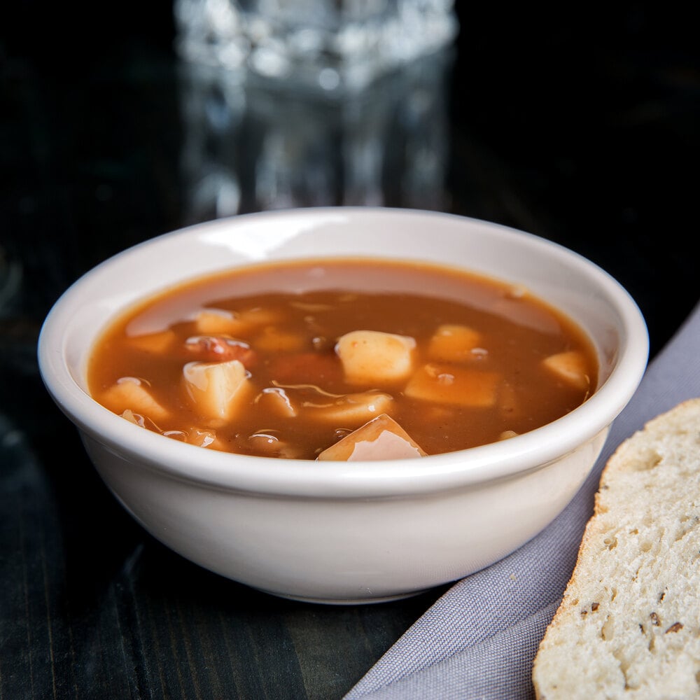 Perfect for salads and side dishes, the rolled edge stoneware nappie bowl is great for restaurants, diners, cafes, and coffee shops. Sporting an elegant design, this nappie bowl is sure to accent any decadent soup you place before your patrons. Plus, the ivory (American white) color is a classic, versatile choice to accent your theme and make your food shine.