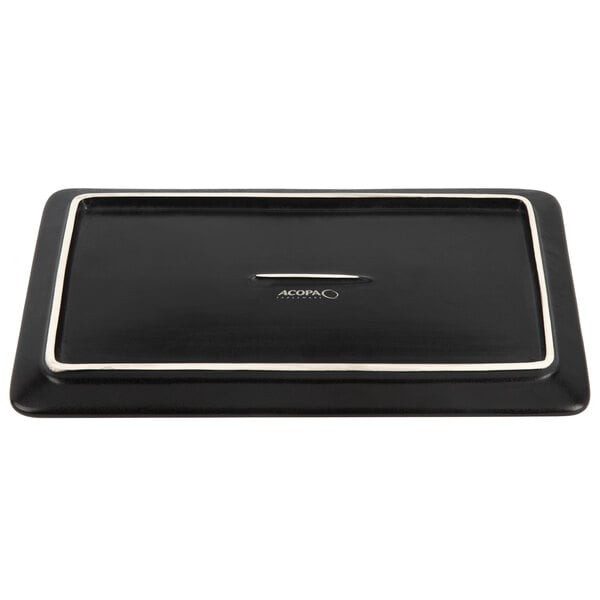 The bold, black color excellently accents other bright white Acopa dinnerware pieces for a diverse, eye-catching look. The dark color also allows your staff to write on the surface with dry erase markers or chalk, providing you with a way to label samples for quick, simple identification.
