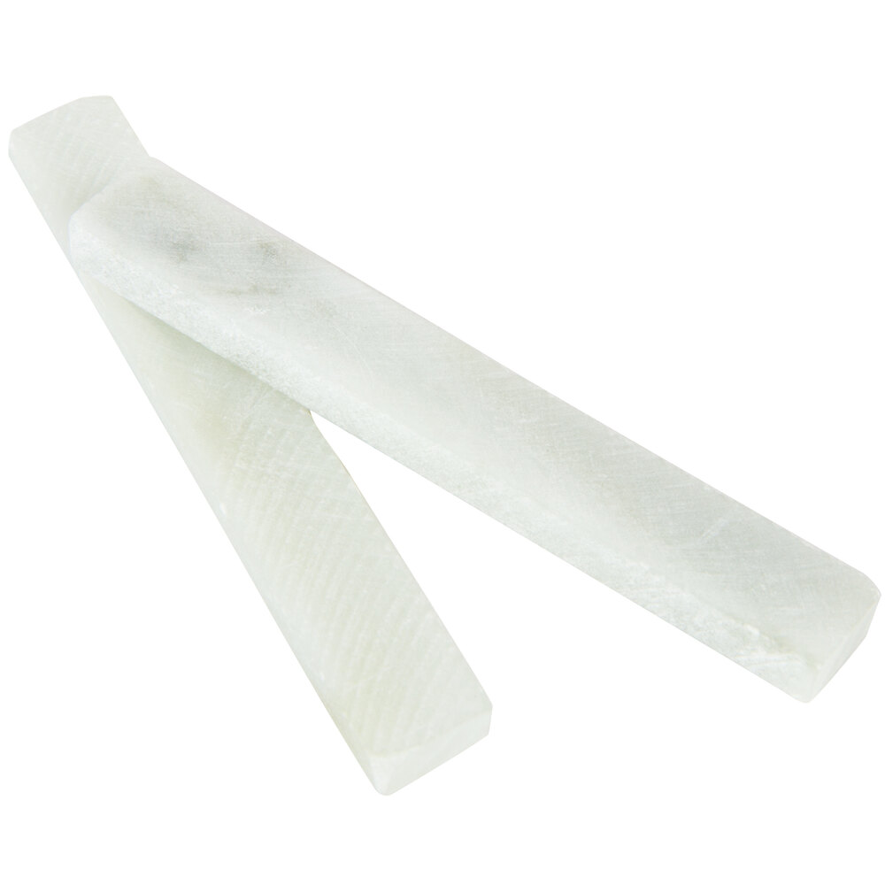 This slate tray comes with a piece of soapstone chalk that provides you with a way to easily write on the tray's surface so guests can quickly identify food selections. Soapstone chalk is composed of talc and is softer than traditional chalk, allowing you to mark up slate or metal items with ease without the hassle or mess of chalk dust.