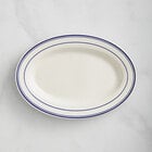 - Item #: 303bbp11Acopa 11 5/8" x 8" Ivory (American White) Wide Rim Stoneware Platter with Blue Bands - 12/Case