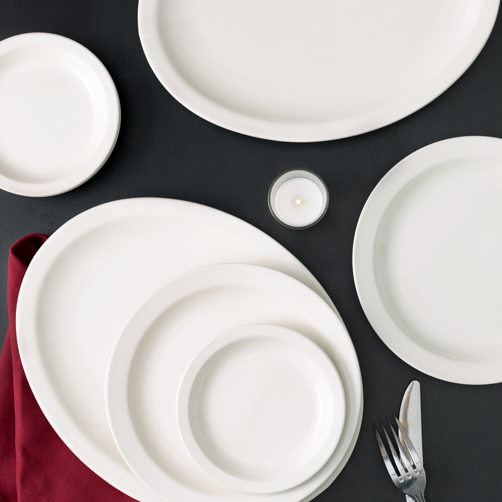 The narrow rim expertly frames each dish and helps prevent messes or spills by keeping foods and sauces contained on the platter so you can create eye-catching displays.