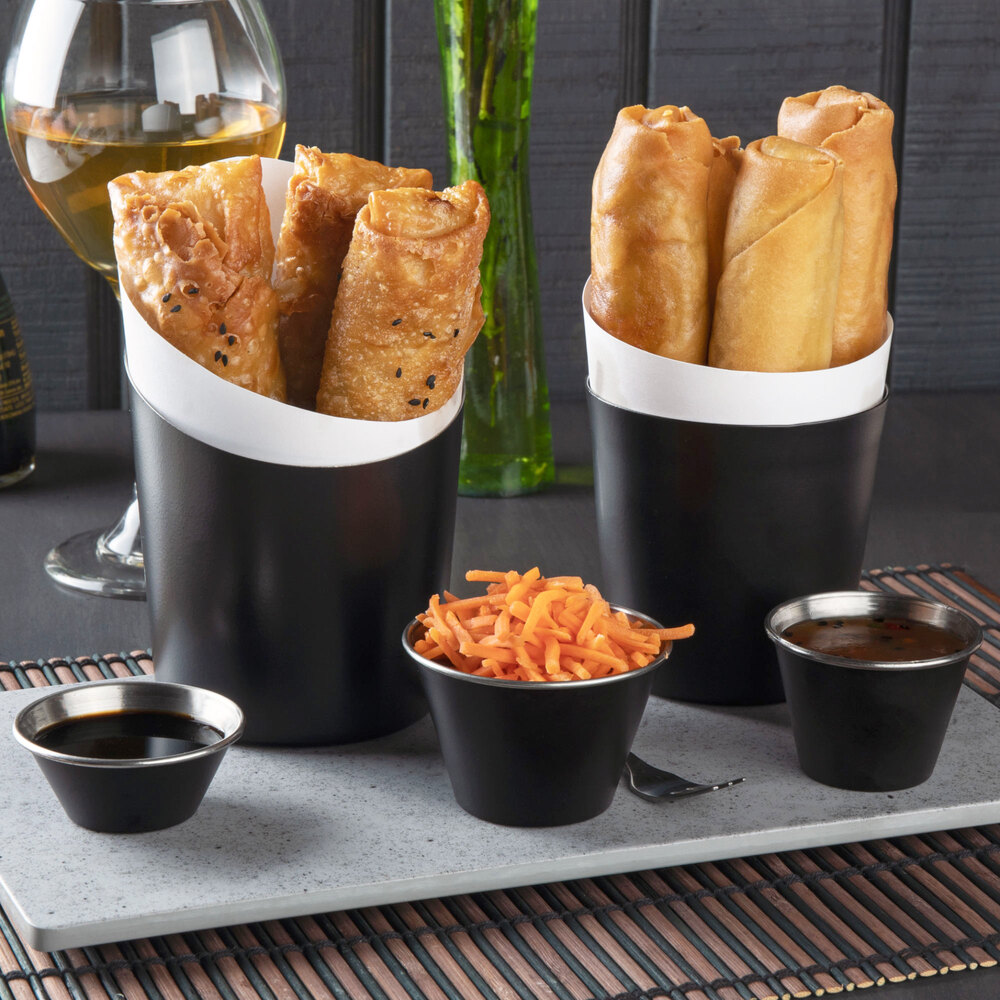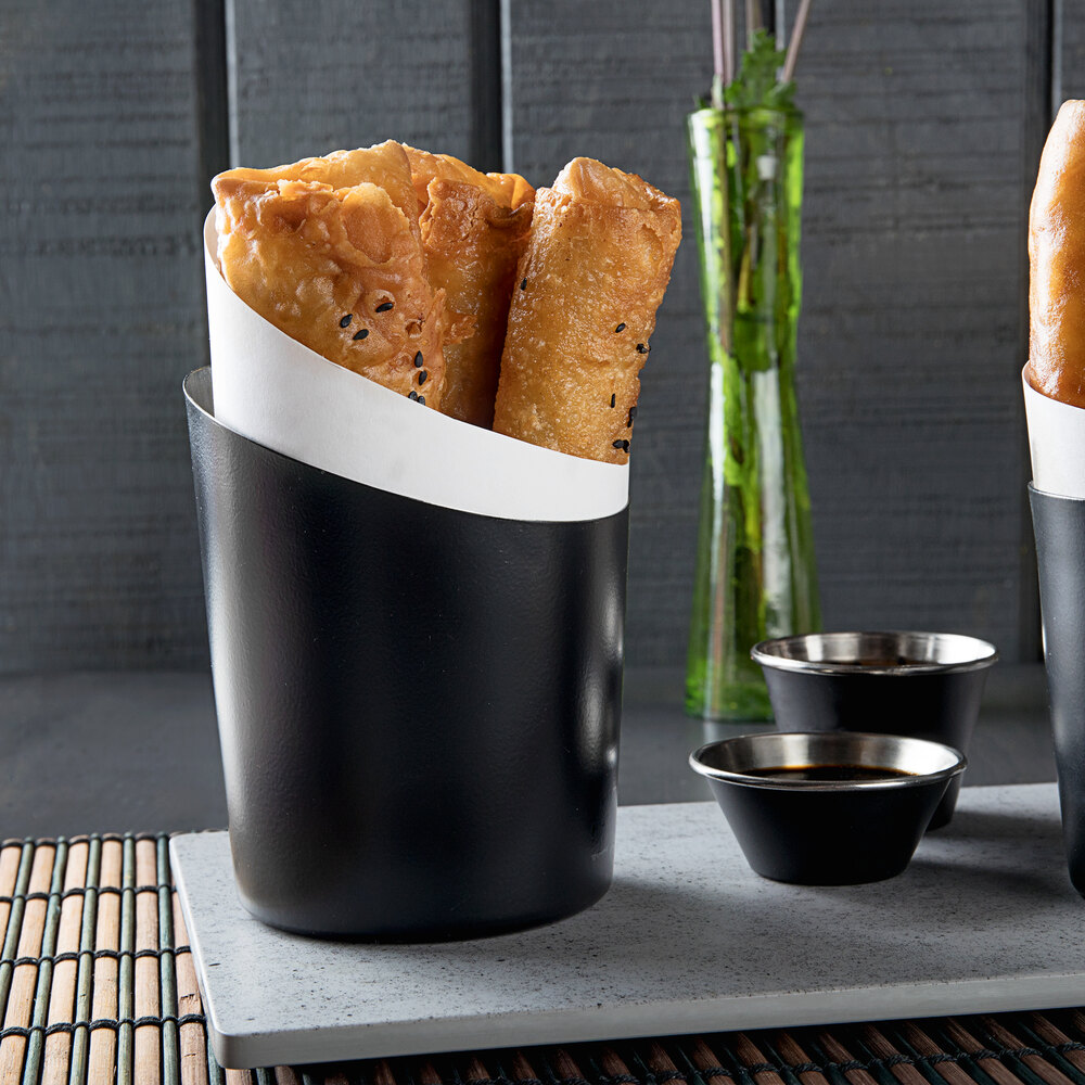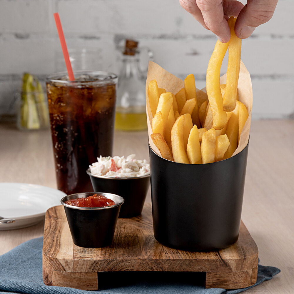 Stock up on this appetizer holder in your restaurant, bar, or diner so you can effortlessly use it to serve all of your guests in style! This serving cup is perfect for use in a casual or upscale setting. You can even pair this holder with a matching sauce cup to offer condiments like ketchup or a signature sauce alongside your appetizers.