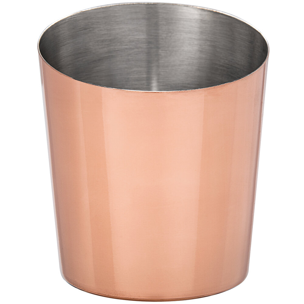 This french fry holder features a copper finish exterior and stainless steel interior creates a trendy, more modern dining experience for your guests.