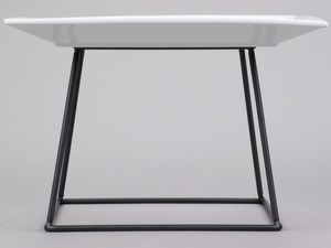 Featuring a bright white, 12" square Acopa china plate atop a 7" black square display stand, this set is sure to display your signature appetizers and desserts with ease. The striking contrast of the white platter against the versatile black metal display stand creates a pleasing visual effect, while the modern square shape and intriguing simplicity of this set brings a contemporary vibe to your presentation.