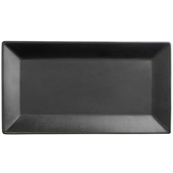 Perfect for serving breakfast, lunch, and dinner entrees, this stoneware platter's trendy, contemporary style will help enhance your food presentation. Boasting a sleek and modern look, this platter's matte black color and rectangular design add sophistication and class to your restaurant or cafe. It also excellently accents other Acopa dinnerware pieces (sold separately) for a diverse, eye-catching look. Plus, it's sure to complement your food for a picture perfect presentation!