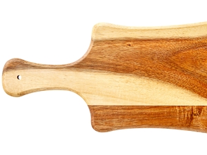 View All ItemsAdd some stylish flare to your table fare with this Acopa 9 1/2" x 7" acacia wood serving board with 4 1/2" handle!