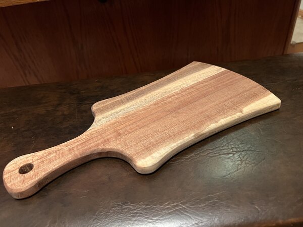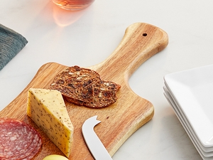 Featuring an exotic acacia wood construction, this board has a distinctive grain and is guaranteed to be one-of-a-kind. This board comes pre-seasoned with food-grade mineral oil to help prevent it from becoming dry and brittle.