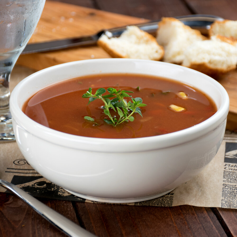 These bowls are the perfect size for serving an 8oz portion of soup, without spilling over during service. My only disappointment was that they are a darker ivory (almost tan) than I was hoping for.