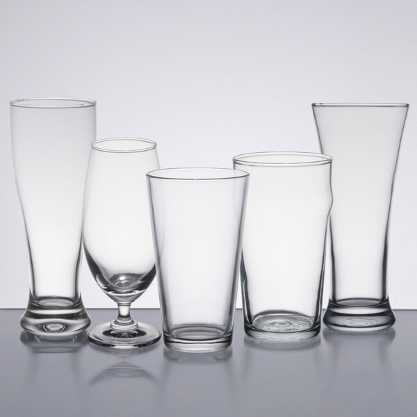 Featuring a thick and balanced construction, this durable 16.25 oz. pilsner glass is ideal for rigorous, high-traffic environments such as a dinner restaurant or bar. The attractive design will perfectly display your microbrews and draft beers, while the extra height will help keep the contents contained.