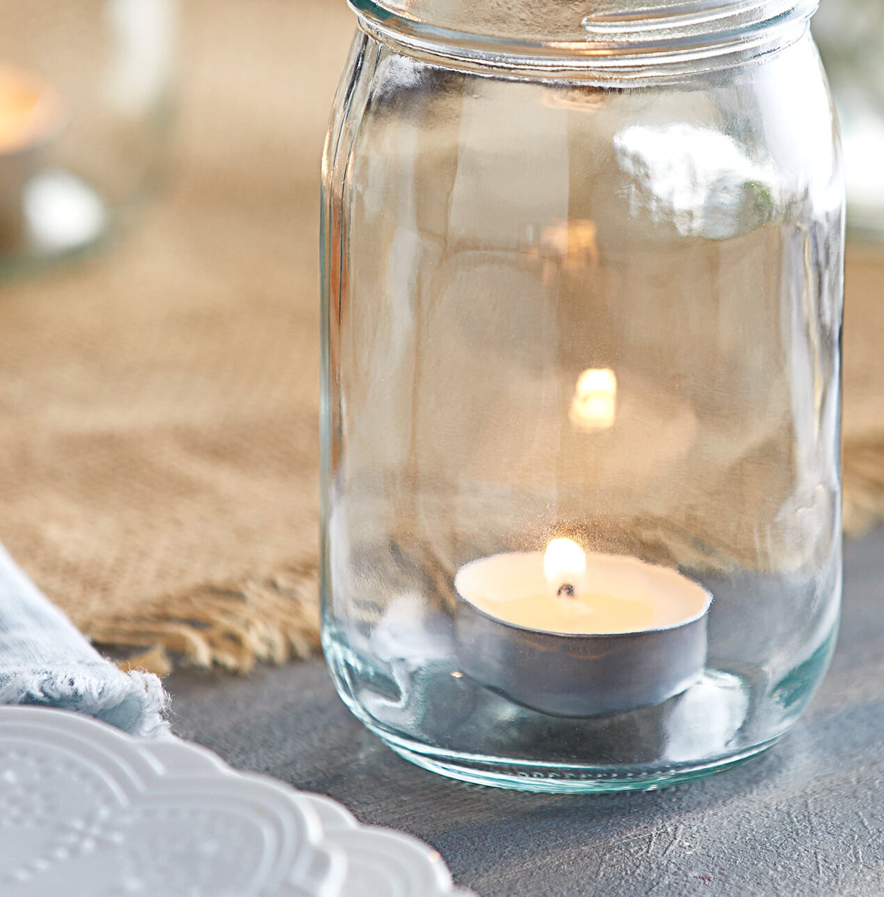 The familiar and classic look of the mason jar combined with a preformed votive or tealight candle (sold separately) is sure enhance your dining establishment or catered event with its rustic charm. Beyond adding elegance to weddings and catered events, the versatile clear glass jar provides ample space for pouring your one-of-a-kind scented candle creations and showcasing their colors.