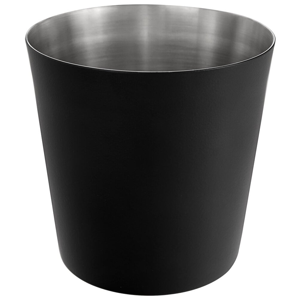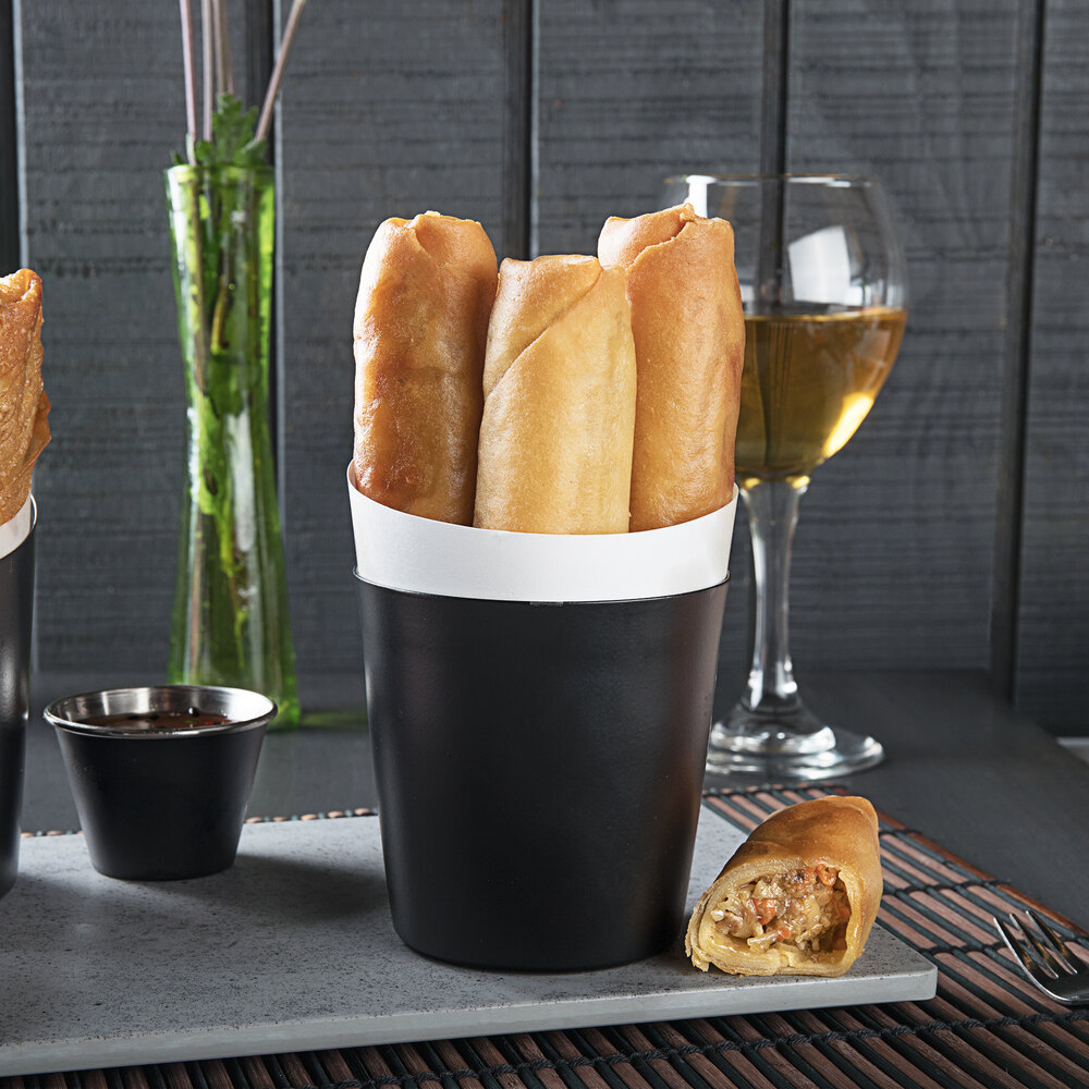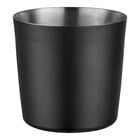 This french fry cup features a black powder-coated matte finish exterior with a stainless steel interior to create a trendy, more modern dining experience for your guests.