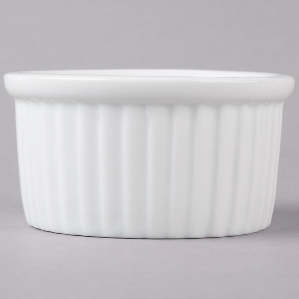 Ensure a pristine dining presentation with this Acopa 2.5 oz. bright white fluted porcelain ramekin.