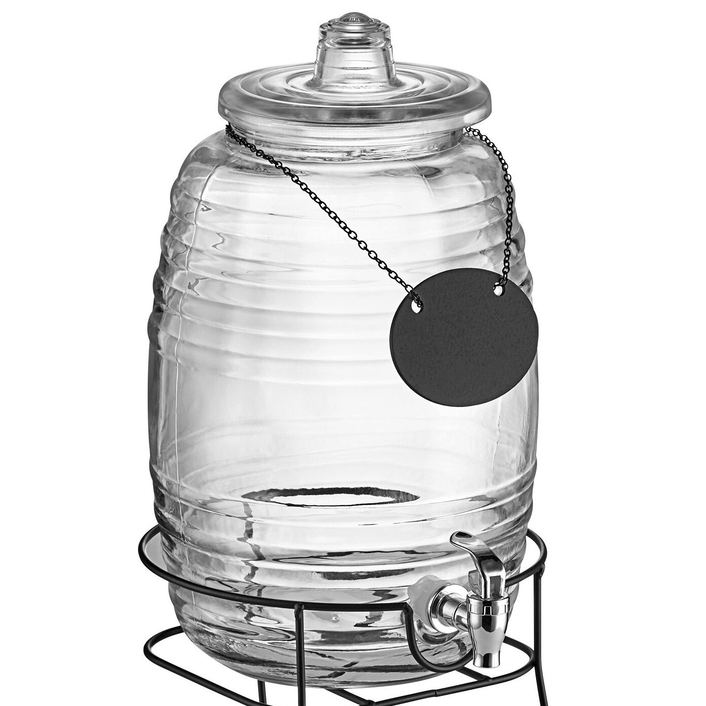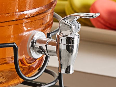 Bought 2 for a party. I absolutely loved the look and functionality of these. But unfortunately one of them broke in the very beginning of use. And the other lid chipped during first use. Also, I only received one chalk board. I also paid extra for the hands free spigot. I like the idea, but we used plastic cups, which I thought were sturdy enough, but the hands free spigot it not super sturdy, so you still had to use your other hand to fill your glass. These are so pretty, but I believe the glass it is made of is too thin.
