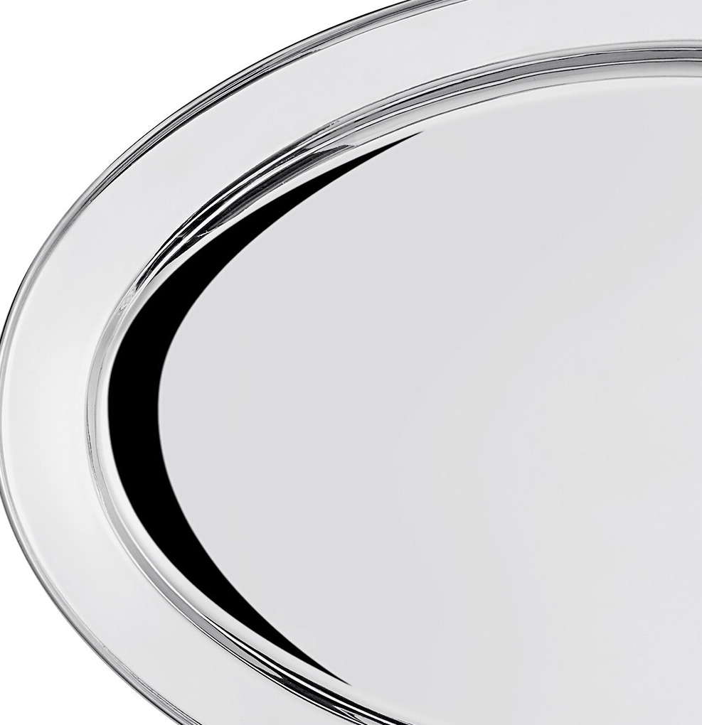 This platter is a versatile accessory for any catered event, buffet, or restaurant! Easy to clean, this platter is a necessity for your next event. Made of durable stainless steel, this platter is made to last through multiple services, while its mirror-polished finish adds an upscale shine for an attractive appearance.