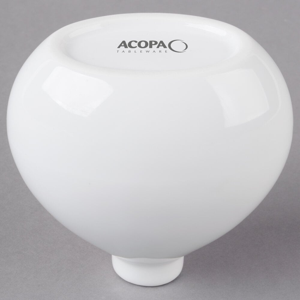 The acopa 3 1/4" bright white porcelain bulb bud vase is a great piece and perfect for adding a splash of color to our tables when we add fresh cut flowers. The design is great and very beautiful.