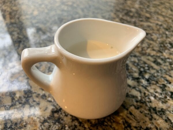 "these work wonders for the dining room. they hold the perfect amount of cream for 2 coffees. customers love them. they look elegant but are functional."