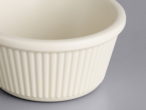 This ramekin is made of a break-resistant melamine construction, allowing it to withstand daily use in commercial kitchens and dining rooms. A great addition to any kitchen, this ramekin adds style and convenience to your tabletop!