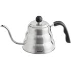 With a durable stainless steel construction, this kettle is built to withstand the wear and tear of everyday use in your busy restaurant, cafe, or coffee shop. Its gooseneck spout enables even pours, which makes this kettle ideal for boiling water to brew pour over coffee. The spout's ability for precise, spill-free pouring also makes it great for use when preparing tea, french press coffee, and any other beverage requiring hot water. The kettle's generous 34 oz. capacity is perfect for self-service at large tables.