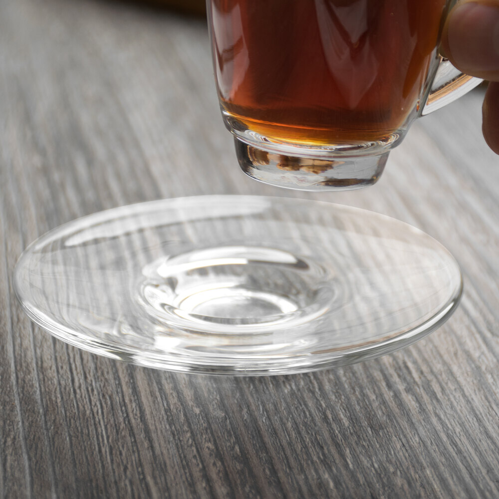The petite size makes this saucer perfect for pairing with your compatible Acopa espresso cup (sold separately). Its glass construction matches your cup, making it a cohesive and dynamic drink presentation. This Acopa saucer is a professional, yet attractive serving solution for your commercial establishment!