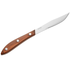This beautifully crafted steak knife is ideal for pork chops, filet mignon, or tougher cuts of meat. The durable, corrosion-resistant blade means it is made to withstand heavy use in any commercial establishment. Plus, the attractive natural brown pakkawood handle is sure to enhance the visual presentation of any tabletop!