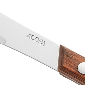 Elevate the dining experience at your restaurant with this striking Acopa 4 1/4" steak knife with natural pakkawood Euro handle.