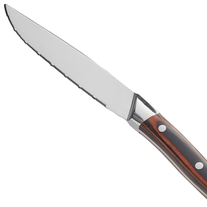 Special care has been given to the full tang design to ensure that the weight of this steak knife is evenly distributed, creating perfect balance and comfort during use. The contoured, curved handle fits comfortably into your patrons' hands. Its attractive pakkawood construction features an eye-catching natural finish that will elevate any table setting.