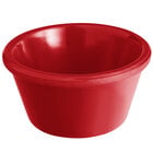This ramekin's elegant, smooth sides and red color enhance the pattern and color of table linens, dinnerware accessories, and table settings. It also provides superior contrast, making your offerings seemingly pop off the table for an attention-grabbing appearance.