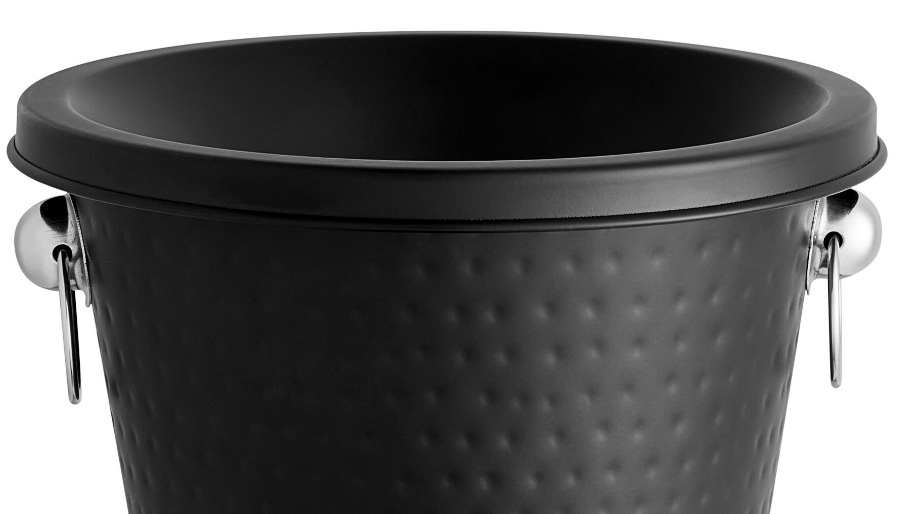 Offer your guests a convenient and easy way to control their alcohol intake during wine tastings using this Acopa 4 qt. black hammered stainless steel wine tasting spittoon.