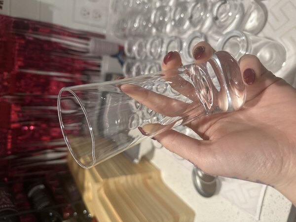 High quality, very small glass for a great price. This is the perfect glass for a small serving of juice..or 2 gulps of water when you're a little thirsty right before bed. I've also used these for fresh squeezed orange juice (2 good sized oranges fill this glass). My young kids love the size and it's the perfect size for their milk with dinner.