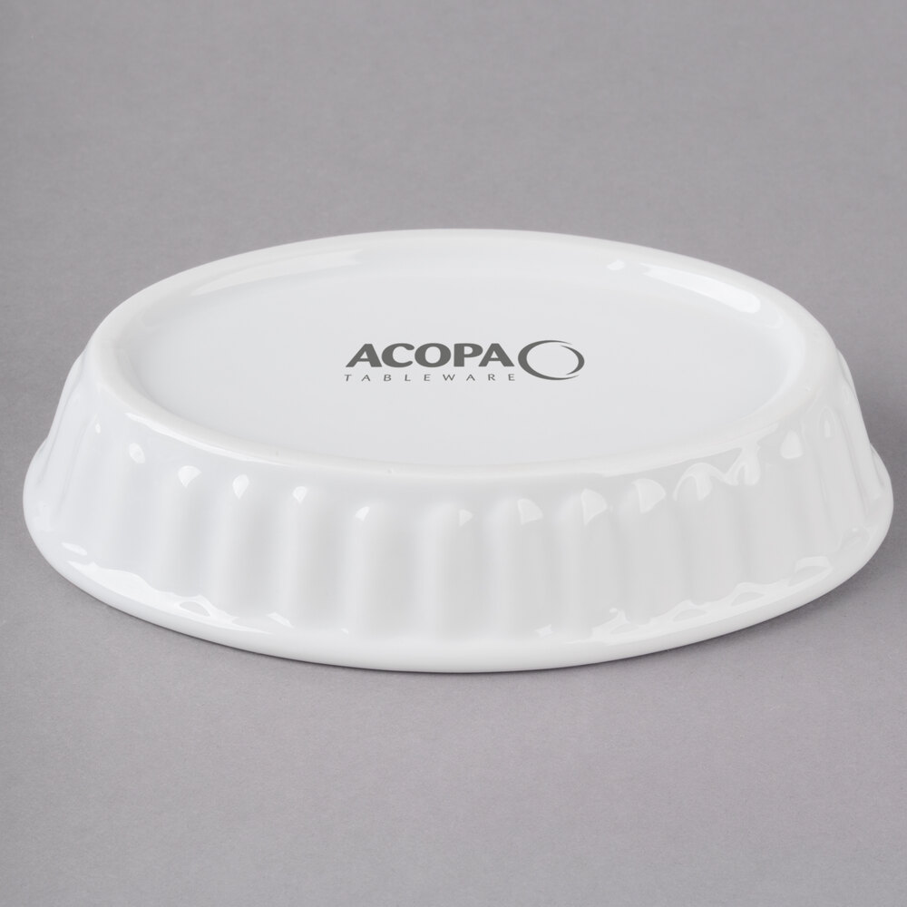 Featuring traditional, fluted sides, this dish allows you to serve your delectable desserts in style. Its bright white color enhances the pattern and color of table linens, dinnerware accessories, and table settings, while also providing superior contrast, making your offerings seemingly pop off the table for an attention-grabbing appearance. It boasts a durable construction that will last, even in your high volume restaurant. Confidently serve your guests with style using this Acopa souffle / creme brulee dish.