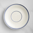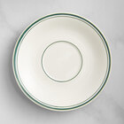 Acopa 6" Ivory (American White) Stoneware Saucer with Green Bands - 36/Case