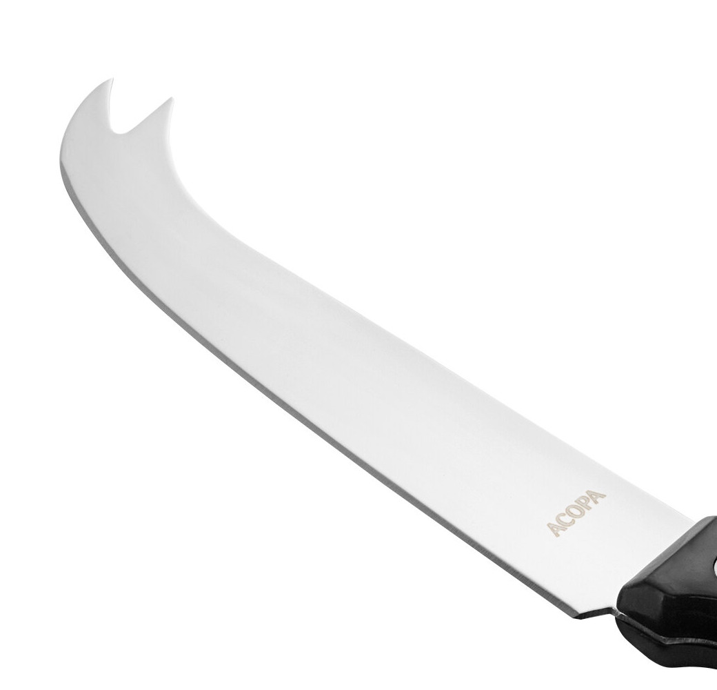 For an elegant cheese-cutting experience every time, this knife's forked blade tip helps with serving after cutting. Sure to withstand everyday use in your restaurant, catering operation, wine bar, or cafe, it boasts a durable stainless steel blade that resists corrosion. Its plastic handle provides a firm grip.