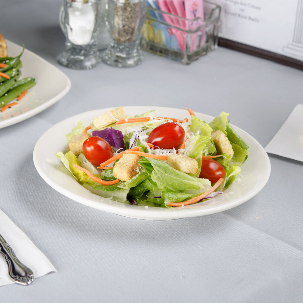 "Great salad plates. Durable and simple. I own a vacation condo and so far my guests haven't broken or chipped any, unlike other dinnerware I bought somewhere else."