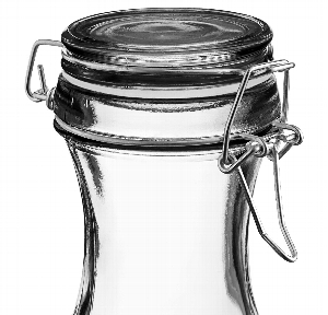 These cute bottles are perfect for water or juice and they seal tight. Lid opens up fully and can be removed, so it’s easy to clean. For transport and storage, we use the Nobel Glass Rack with four blue risers.