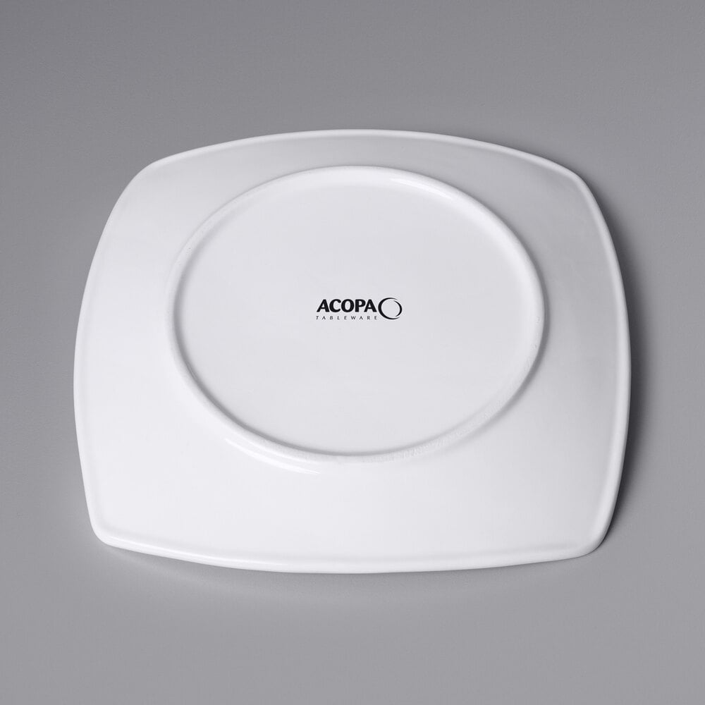 Modern, sleek, and stylish, this square porcelain coupe plate is the perfect backdrop for your patrons' favorite foods! With an attractive coupe design that adds a degree of sophistication, it will impress guests and put you a step above your competition. Create an eye-catching and dynamic display at your restaurant, hotel, or catered event with this Acopa plate!
