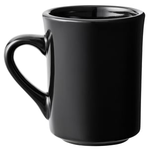 Its sleek black color ensures it will enhance any setting, making it great for coffee shops, diners, and restaurants, alike. This 8 oz. mug is perfect for serving coffee and tea thanks to a versatile design and timeless style. Pair it with additional black stoneware pieces for a look that can't be beat.