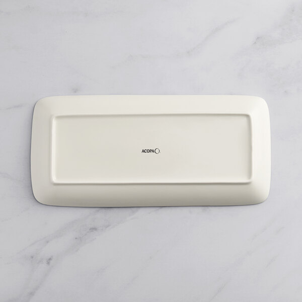 With the ability to withstand heat up to 450 degrees Fahrenheit for 30 minutes, this rectangular platter is perfect for serving shared sides, appetizers, and entrees. Its versatile size makes it ideal for upscale restaurants, diners, and cafes looking to elevate their dining experience. Whether you're showcasing vibrant salads or savory entrees, this rectangular porcelain platter is the perfect canvas for your culinary creations. Elevate the dining experience at your establishment with the Acopa Architect porcelain platter, a versatile and stylish addition to your tableware collection.