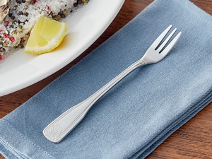 Complete your table setting with this Acopa Atglen 6" cocktail fork. Pair it with the rest of the Atglen line to create an upscale and attractive table setting. Your guests are sure to appreciate the tasteful design of this flatware, and it won't break your budget! Made of stainless steel, it will be a long lasting and complementary addition to your decor. Ideal for weddings, banquets, and galas, this flatware adds the perfect touch to your special events!