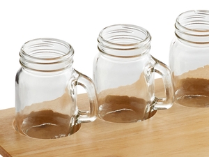 Complete with (12) 4.75 oz. Acopa mini mason jar taster glasses and 3 natural finish flight trays, this flight set allows you to provide your customers the variety they're looking for! Not just for beer, this flight set is an ideal serving solution for a variety of beverage samples, from fresh-squeezed juice to your signature cocktails. No matter what you'd like to serve, this sampler will help you define your niche and create a unique presentation that your guests will remember.